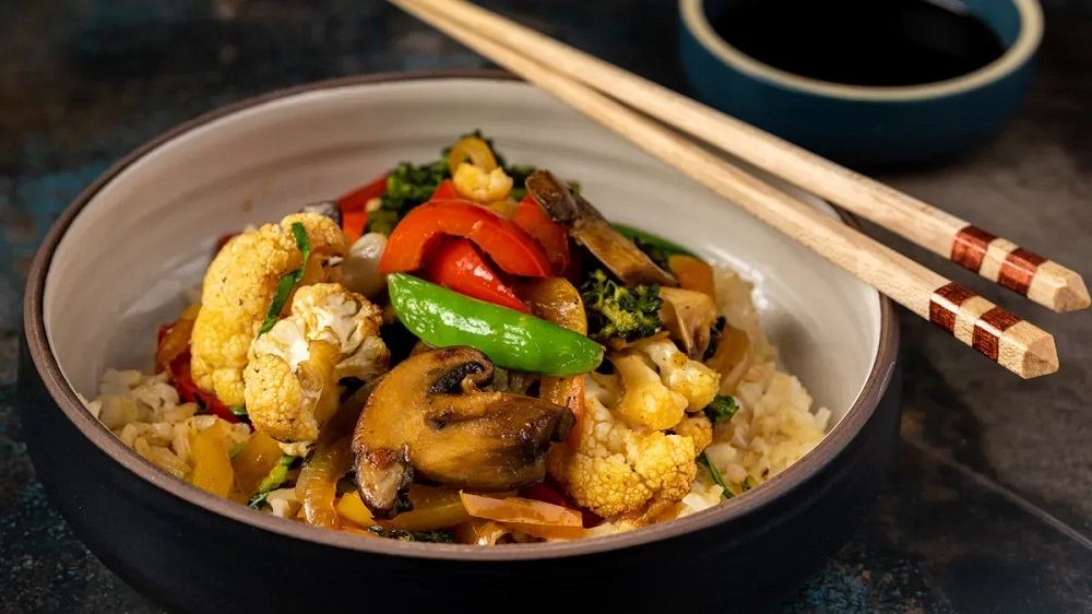 الخضراوات: البروكلي، والبوك تشوي، والفطر، والباذنجان، والفاصوليا الخضراء تمتص الصلصة وتبرز نكهتها الغنية.