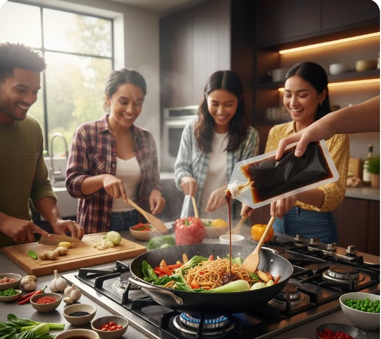 "لم أكن أعلم أن الطبخ يمكن أن يكون بهذه السهولة. صلصة الصويا المتجمدة من بيرل ريفر بريدج تمنح طعامي نكهة غنية وعميقة في كل مرة!"